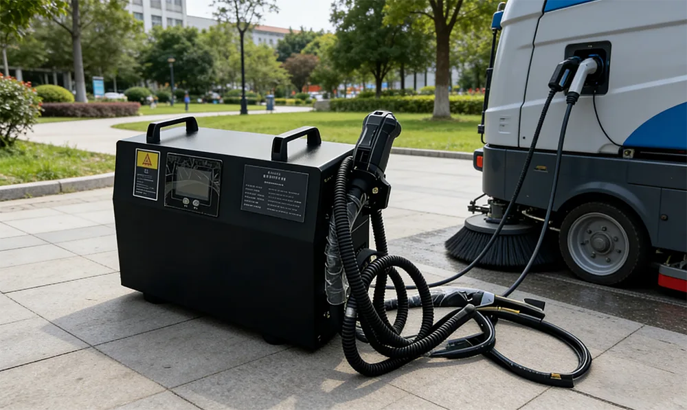 Untuk kondisi kerja yang kompleks seperti peralatan pembersih luar ruangan dan kendaraan penanganan pelabuhan, pengisi daya mengadopsi struktur tahan debu dan kedap air IP41 untuk menahan erosi debu dan hujan. Bodi paduan aluminium yang ringan hanya berbobot 60 kg, 15% lebih ringan dibandingkan produk sejenis, membuat pergerakan dan pemasangan lebih nyaman.